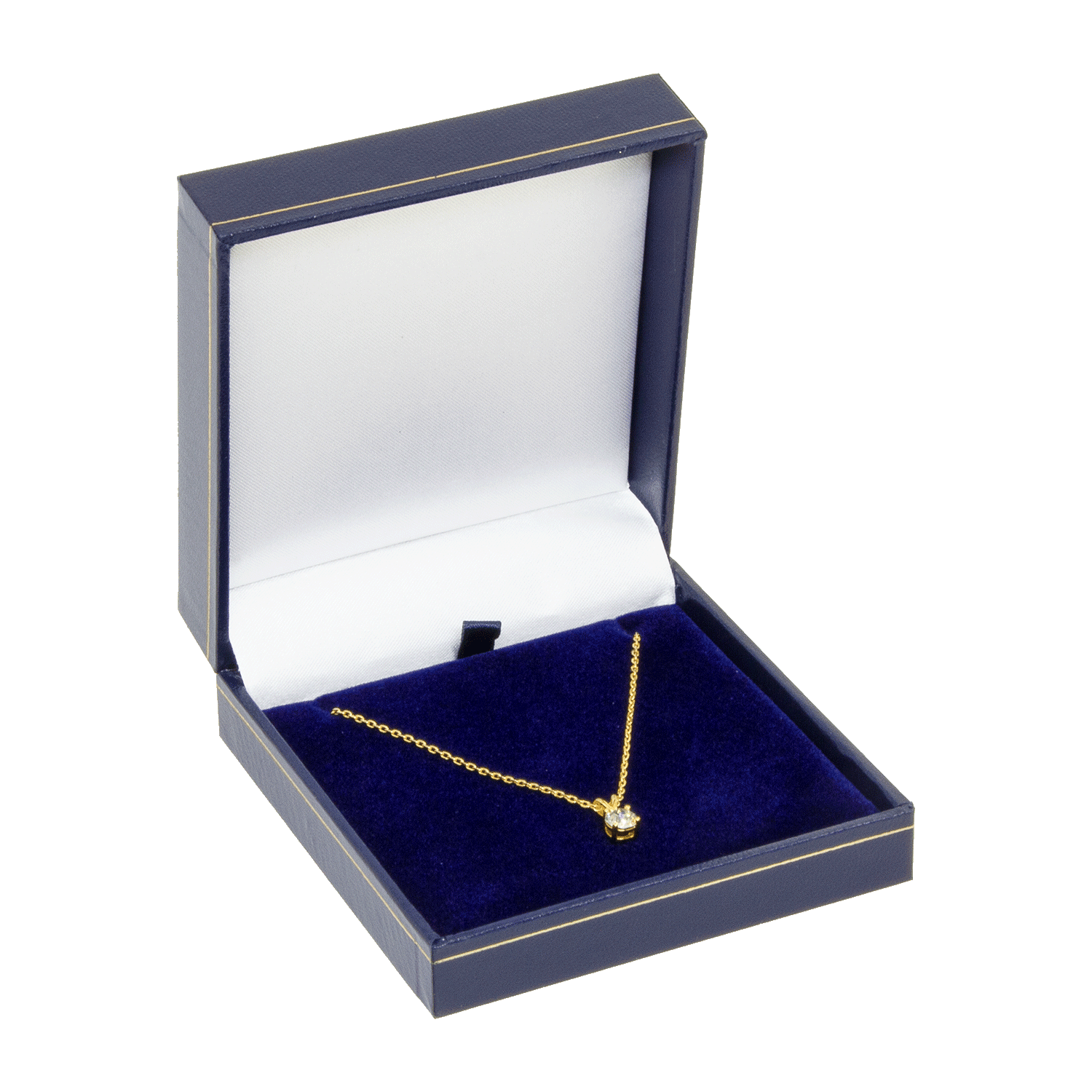The high-quality jewellery cases of the 5516 MANHATTAN series in blue exterior colour are the ideal choice for jewellers, goldsmiths, and jewellery brands to stylishly present pendants and earrings. The compact dimensions of 82 x 82 x 27 mm offer enough space for your high-quality jewellery piece. Inside, there is a jewellery insert in white and blue, perfectly showcasing your jewellery. For a customised touch, you can choose hot foil stamping on the inside in gold, silver, black or another desired colour. Multi-coloured embossing is also available at an additional cost. Make your brand shine and impress your customers with these exclusive high-quality jewellery cases.